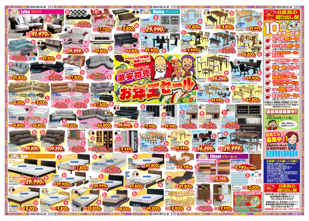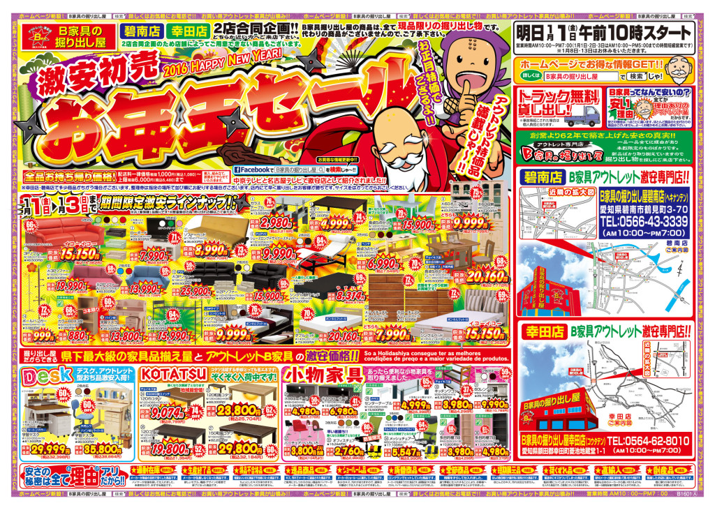2016年もB家具の掘り出し屋をよろしくおねがいいたします。