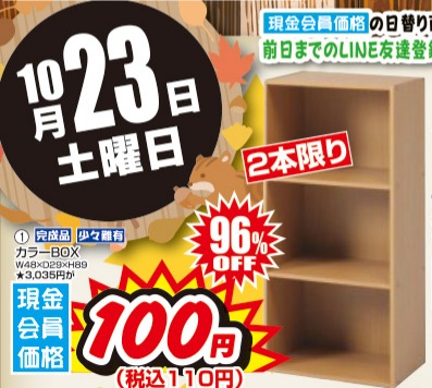 なお、日替わり商品での現金会員価格の商品購入は、前日までのLINEお友達登録が必要となります