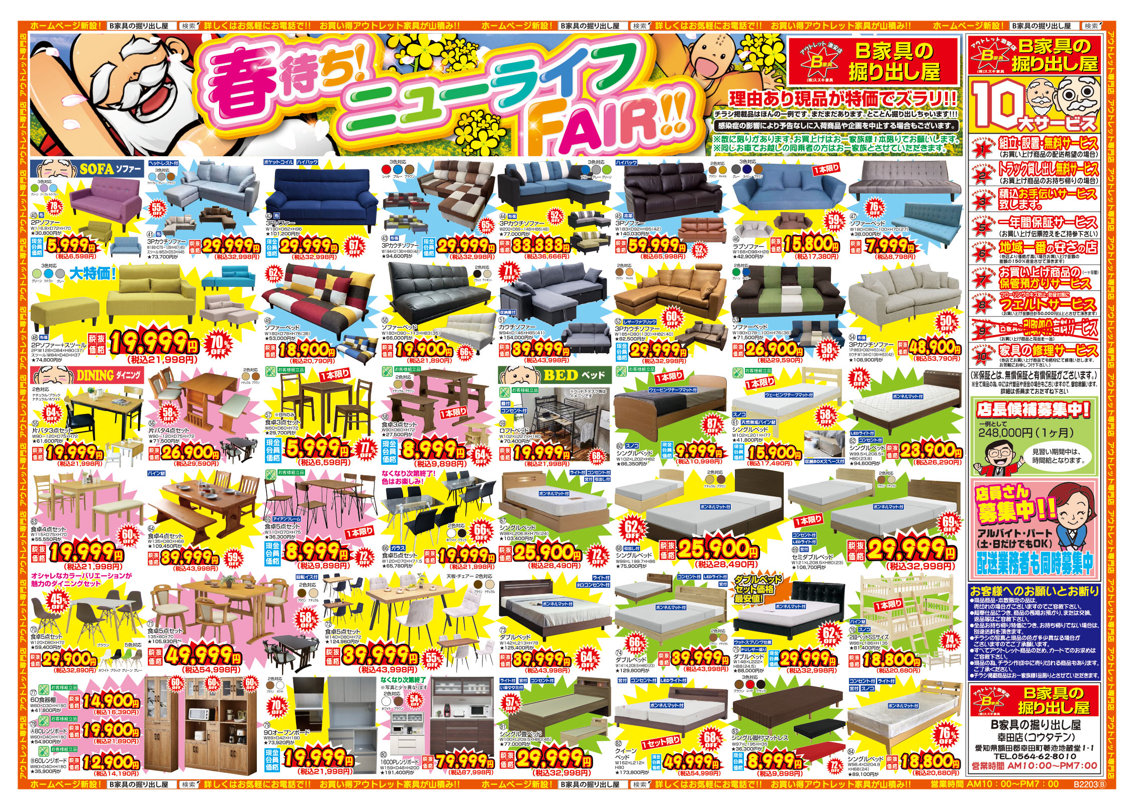 B家具の掘り出し屋では、値上げ前に大量入荷した商品を在庫が続く限り激安価格にて大放出中