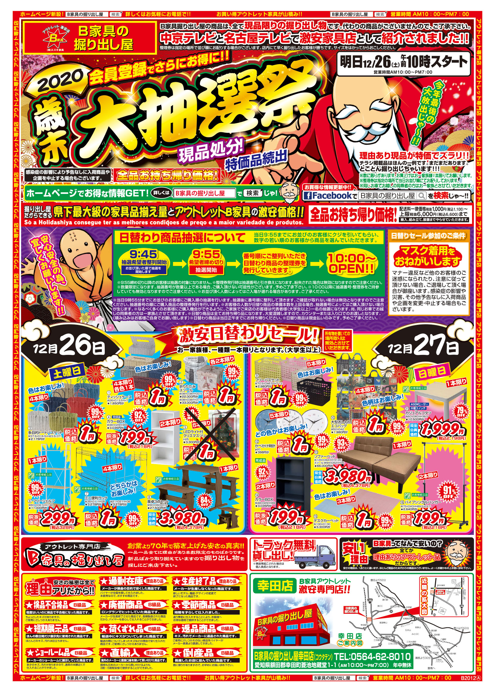B家具の掘り出し屋は、年内無休にて 営業中でーーす😀😀