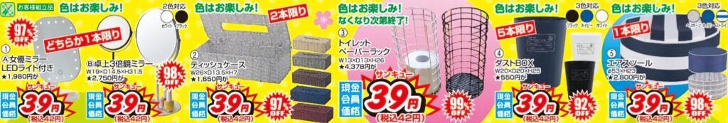 激安の 税抜 ¥39(現金会員価格)や 税抜 ¥3,999(現金会員価格)商品も⚡⚡