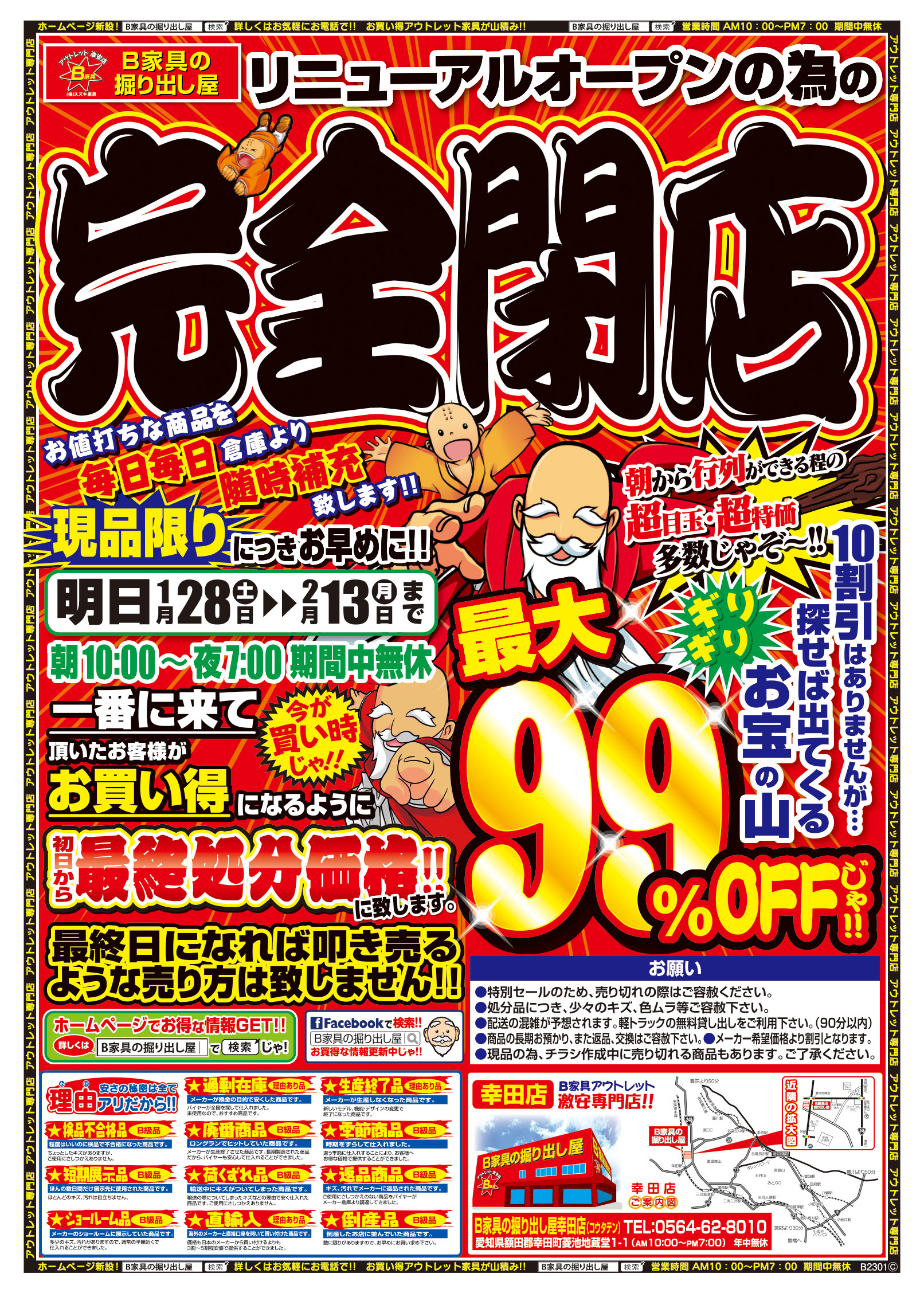 B家具の掘り出し屋では、完全閉店セールを開催中でーーす😊😊