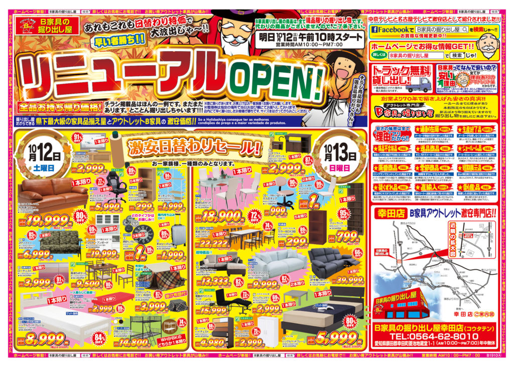 本日 B家具の掘り出し屋は、営業しておりますが 天候の状況次第では、お客様や従業員の 安全を最優先に考えて