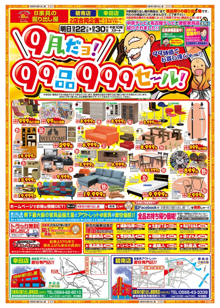 HOME > お知らせ > ☀9月だよ☀99品☀999セーーール☀