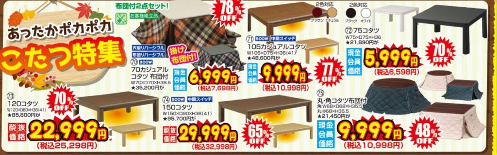 また、暖か コタツも 超お買い得価格で山積み展示中💪💪