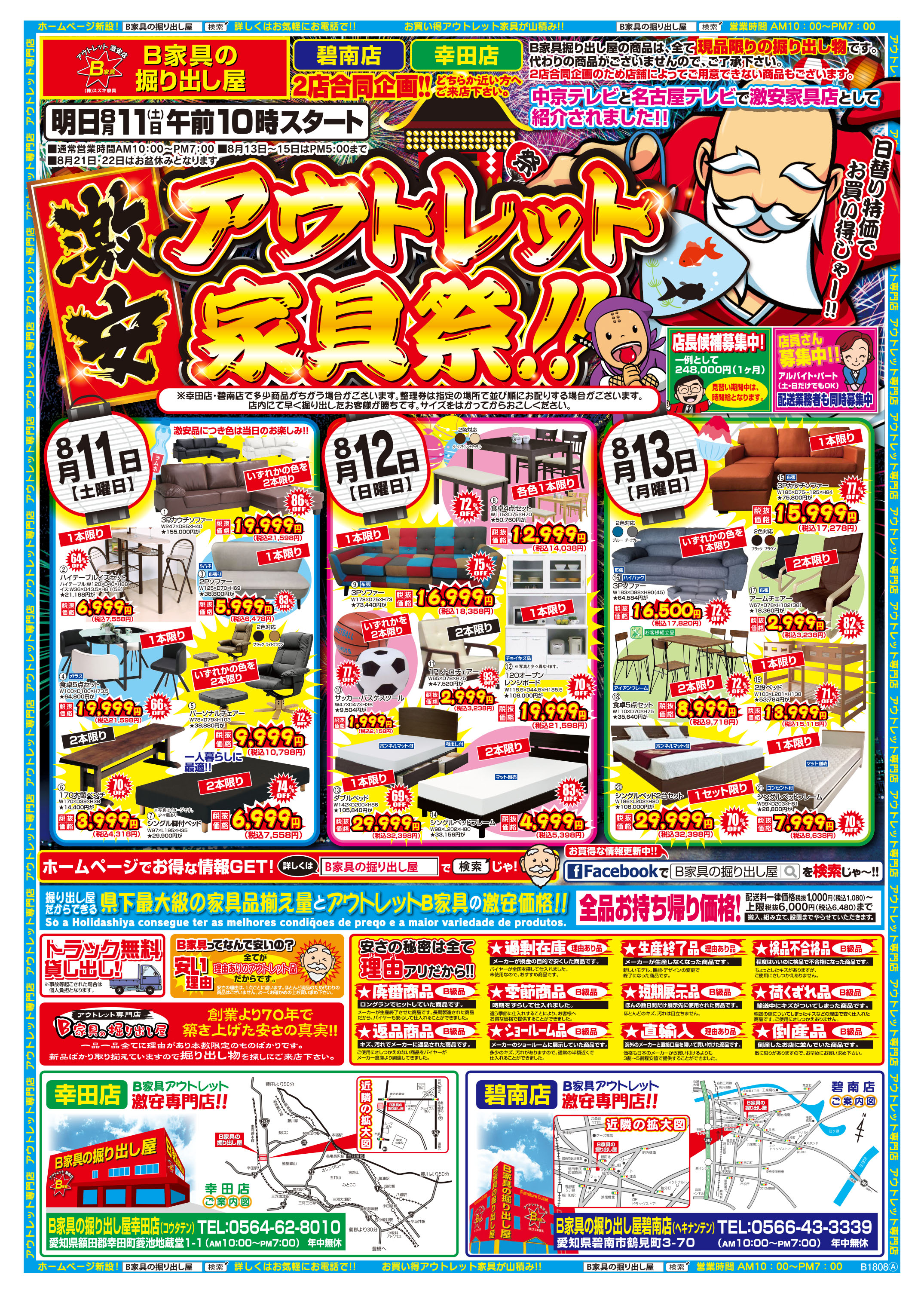 お盆休みは、B家具の掘り出し屋に遊びにきてねーーー!(^^)!