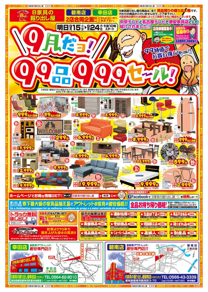 9月だよ!!99品!!999セーールは、期間限定でーーーす!!(*^_^*)
