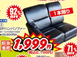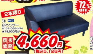 リニューアルオープンセーール!! LINE公式でお友達登録だけでっっっ!!(/・ω・)/ さらにさらに安くなーーる(日替超特価品は対象外) 税抜¥7,980 1Pソファーセッットも 税抜¥1,999 の理由有 2Pソファーも 税抜¥4,660 の2Pソファーも!!! 本数限定の早い者勝ち 整理券は、9時45分頃 お配りいたします。(お一家族 一種類 一品限り) 税込 1 えーーーーん の商品もありまーーーす。