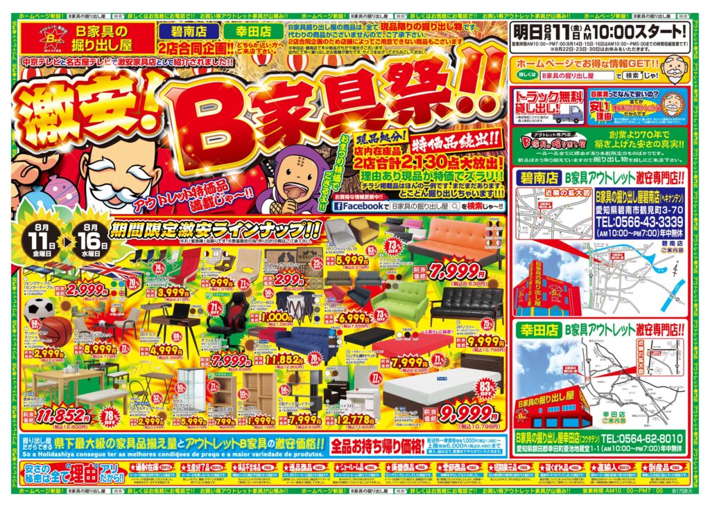 B家具の掘り出し屋は、お盆期間も 無休営業でーーーす!!!