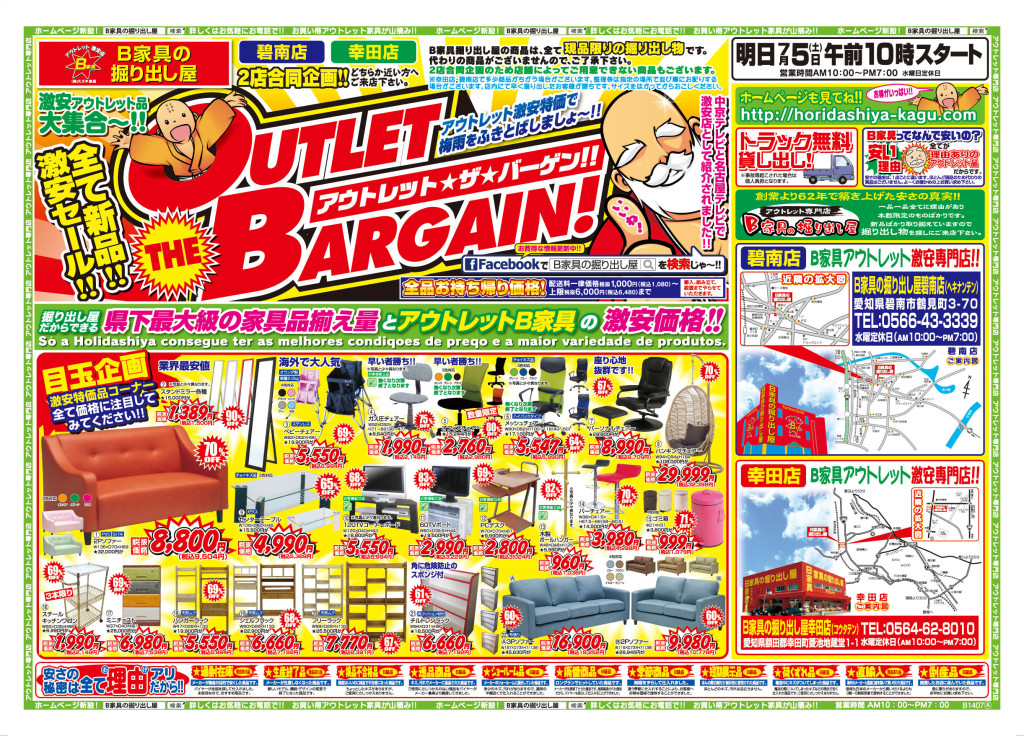 B家具の掘り出し屋のスタッフも笑顔と元気で梅雨時を吹き飛ばす