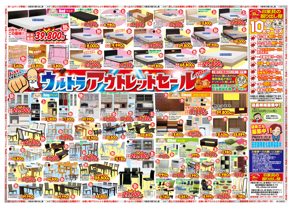 B家具の掘り出し屋の 夏のセールは??