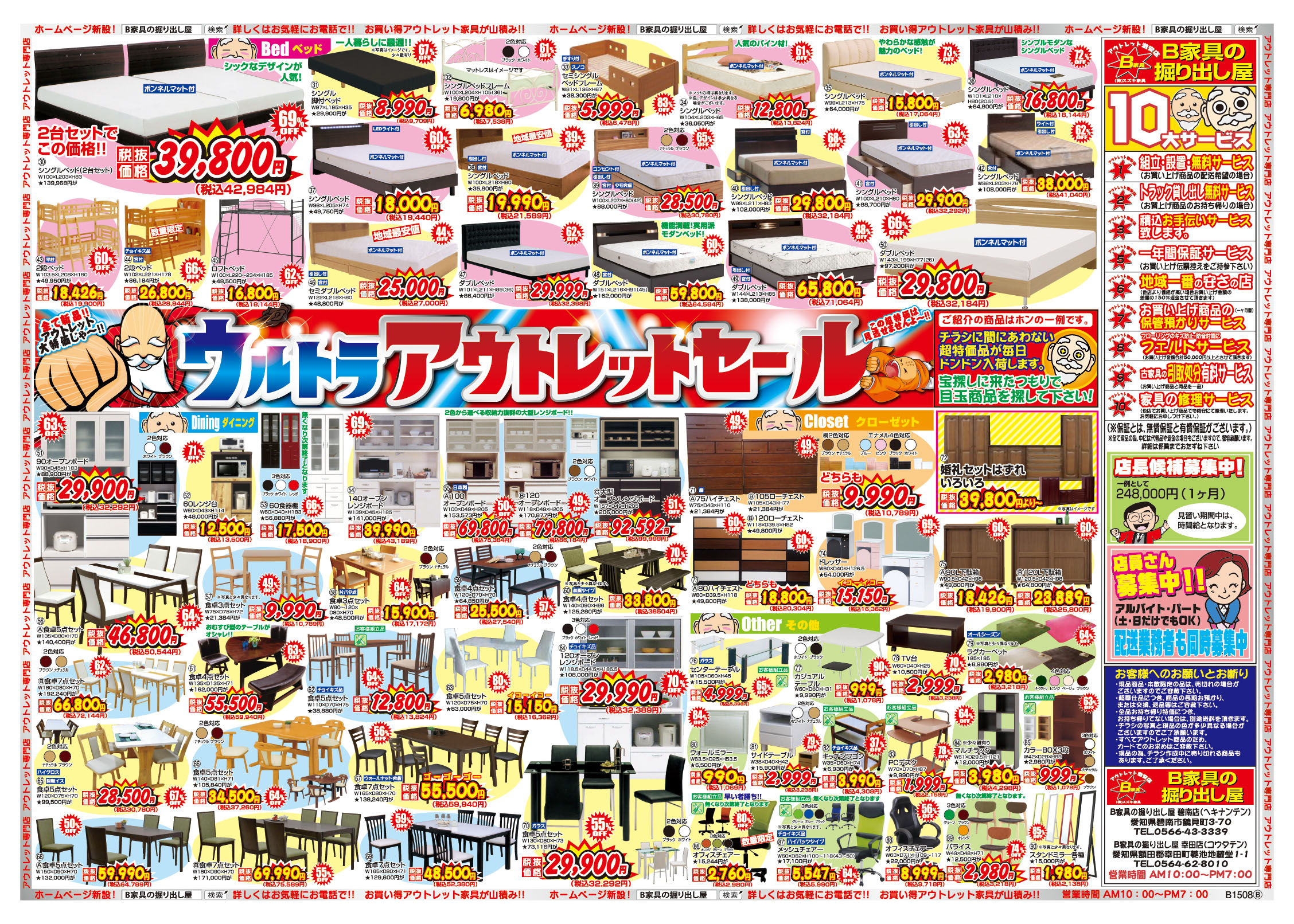 また、ベットや食卓セットにも力を入れて おもいっきり 価格変更!!激安になっております。