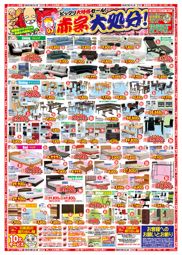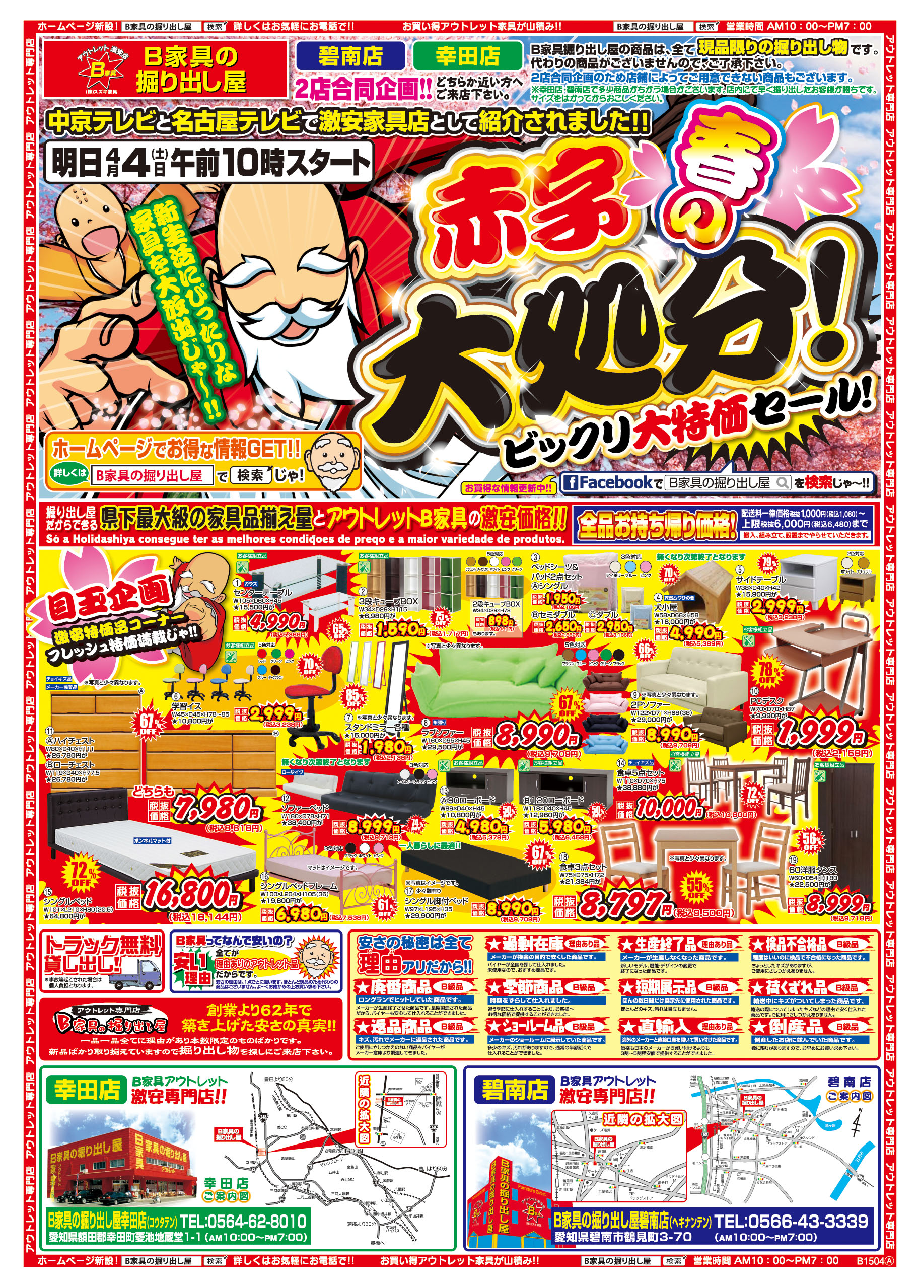 暖かい 4月も楽しいお買い物とお値段以上の お買い得感を B家具の掘り出し屋で!!!