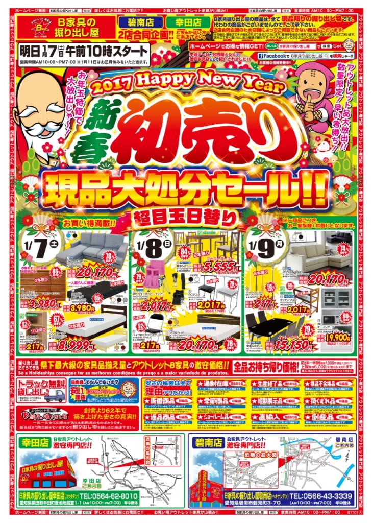 2017年も B家具の掘り出し屋をよろしくお願いいたします。