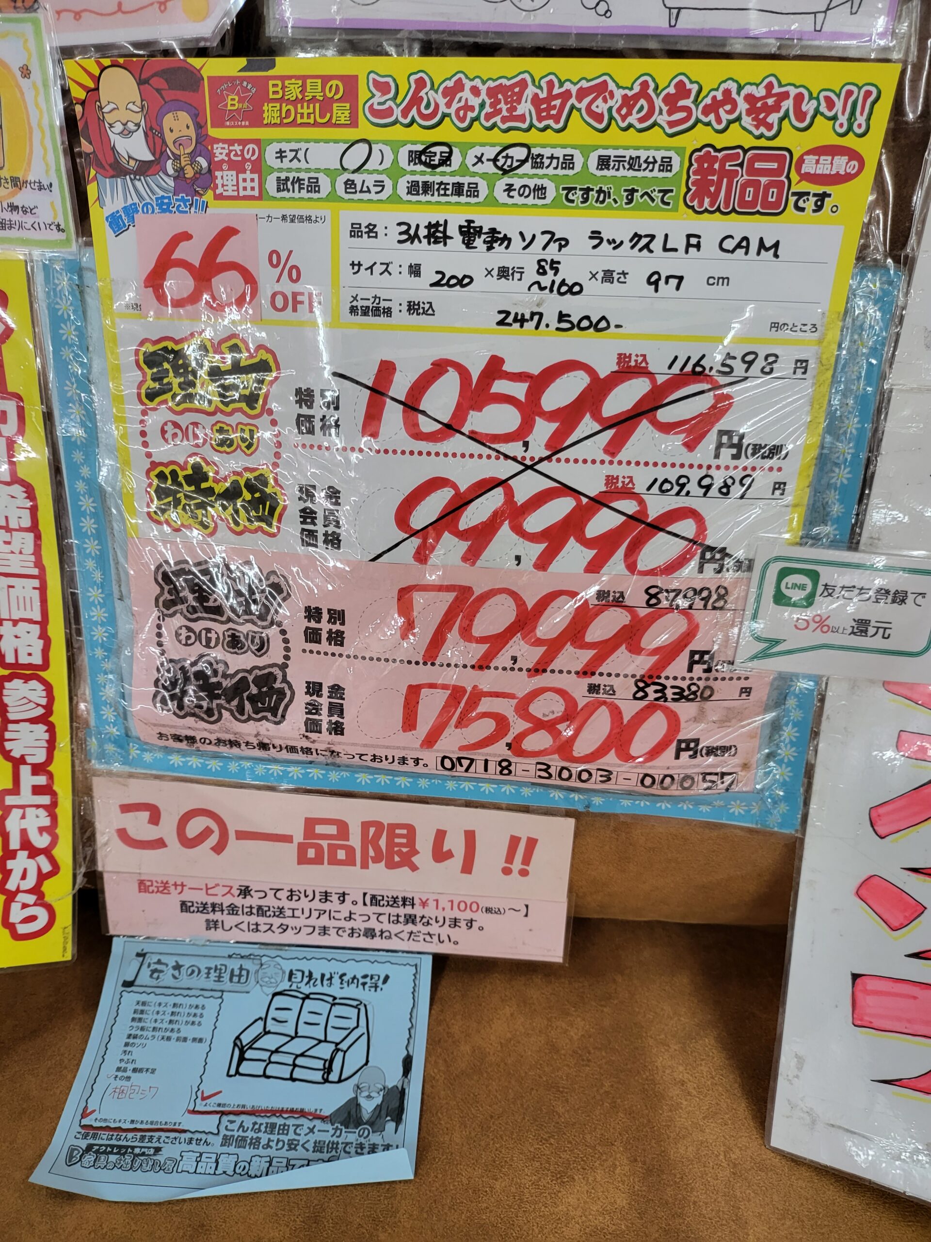 テーブル付きの電動リクライニングソファーもLINEお友達登録と現金支払いで更にお買い得でーーす💥💥