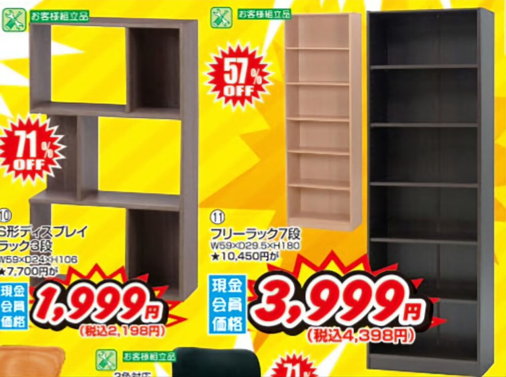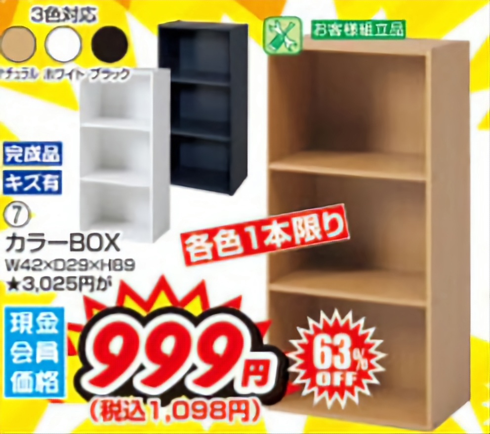 広告では、カラーボックス❗❗ 現金会員価格 ¥999(税抜)💦💦