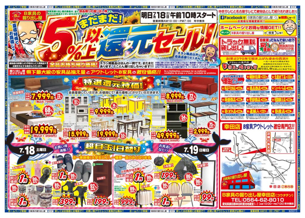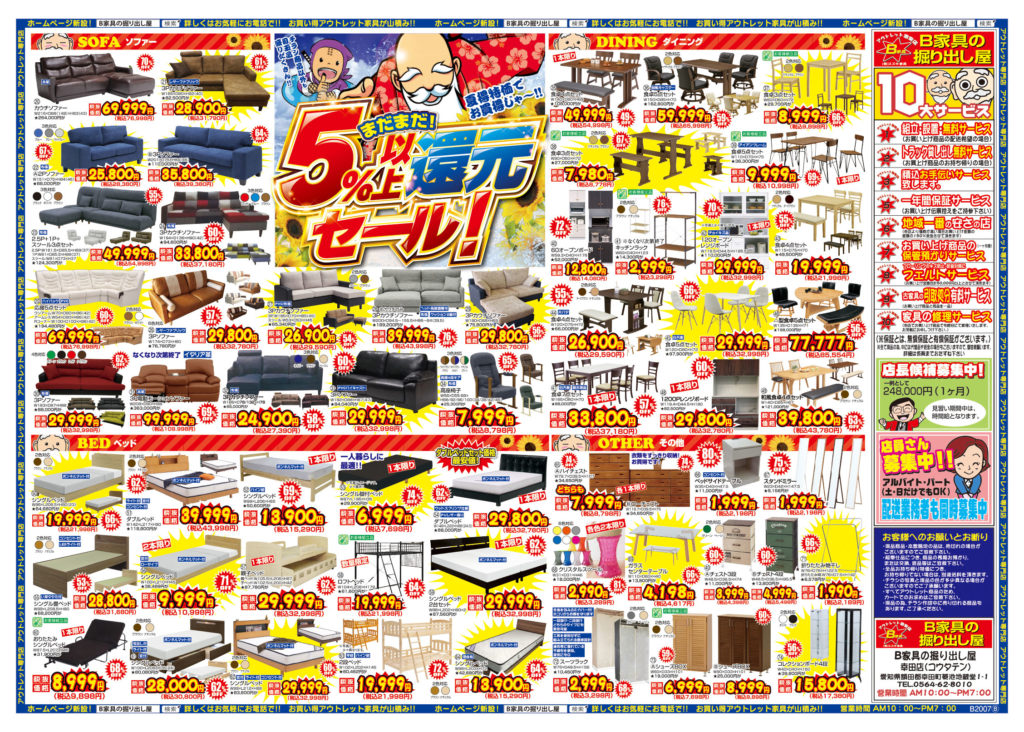 B家具の掘り出し屋では、販売価格にて!! まだまだ、5%還元していきまーーーす