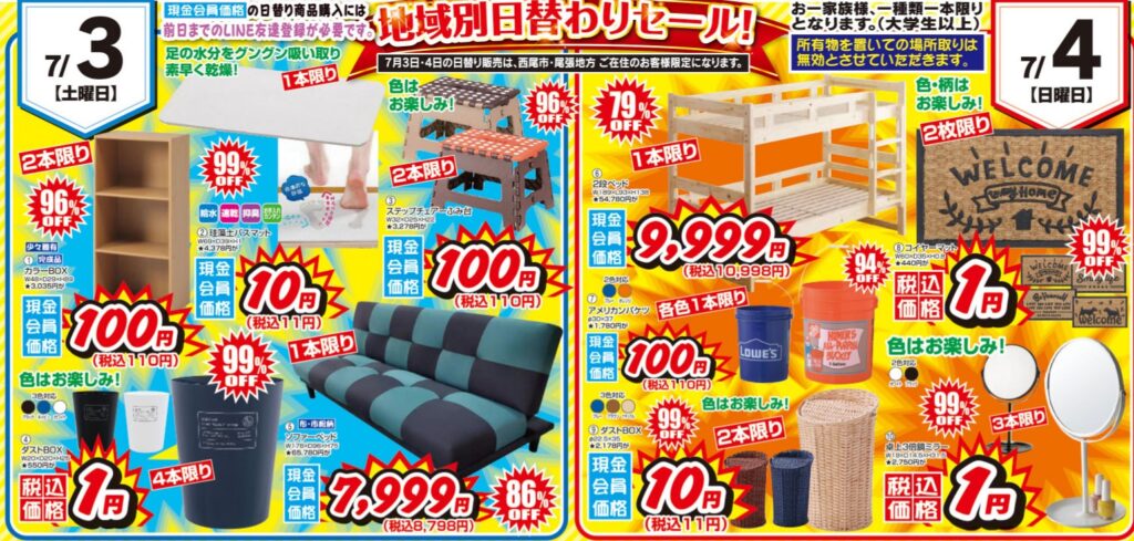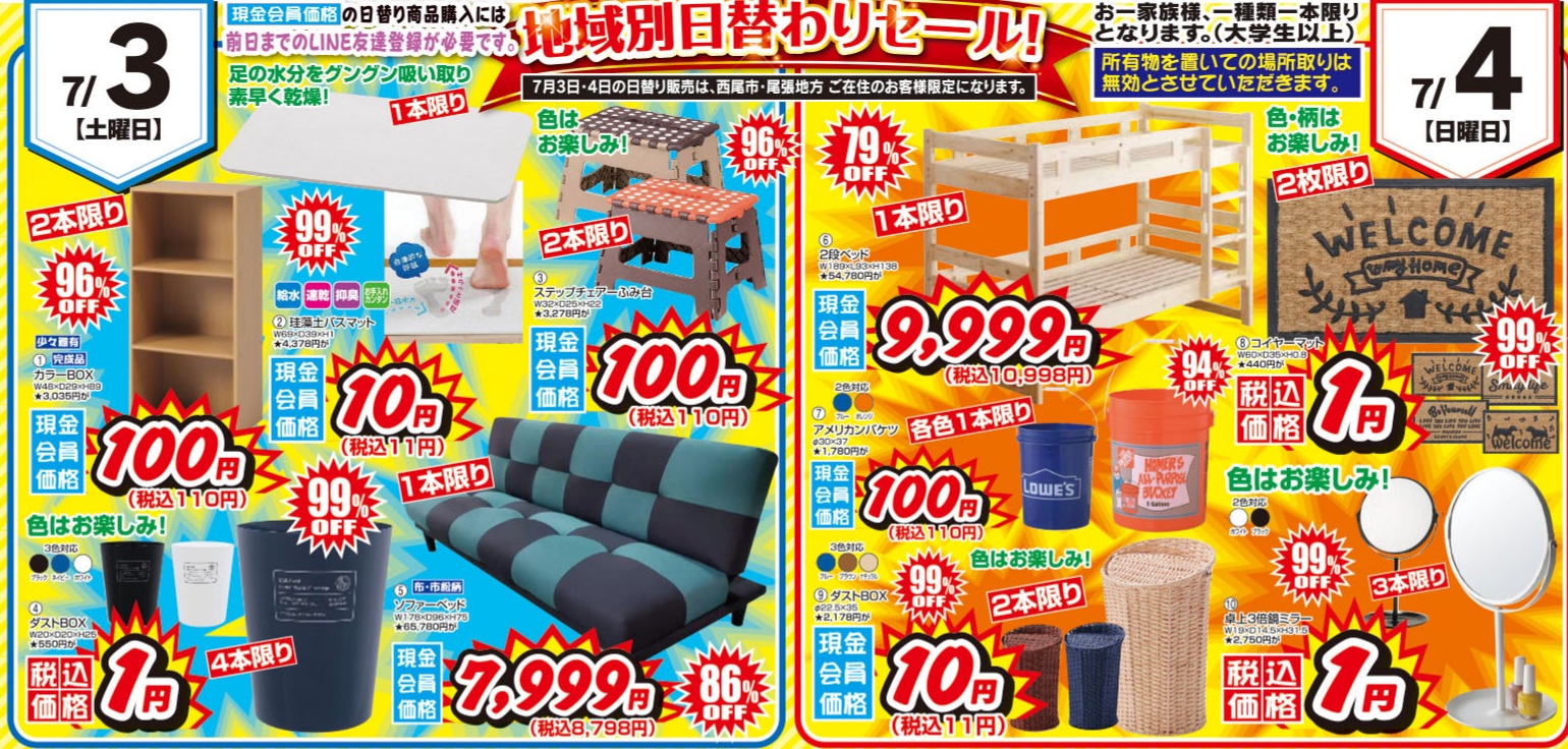 7/3 7/4 は、 西尾市、尾張地方在住の お客様限定