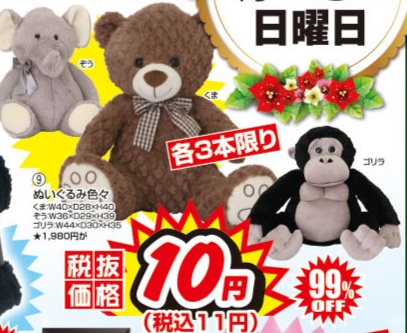 例えば🎄🎄 ぬいぐるみの くまさん🐻ぞうさん🐘ゴリラさん🦍❗❗