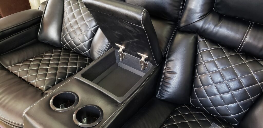 ひじ掛け部分には、収納BOX❗❗ 首元の角度調整も付いてまーーす💪💪