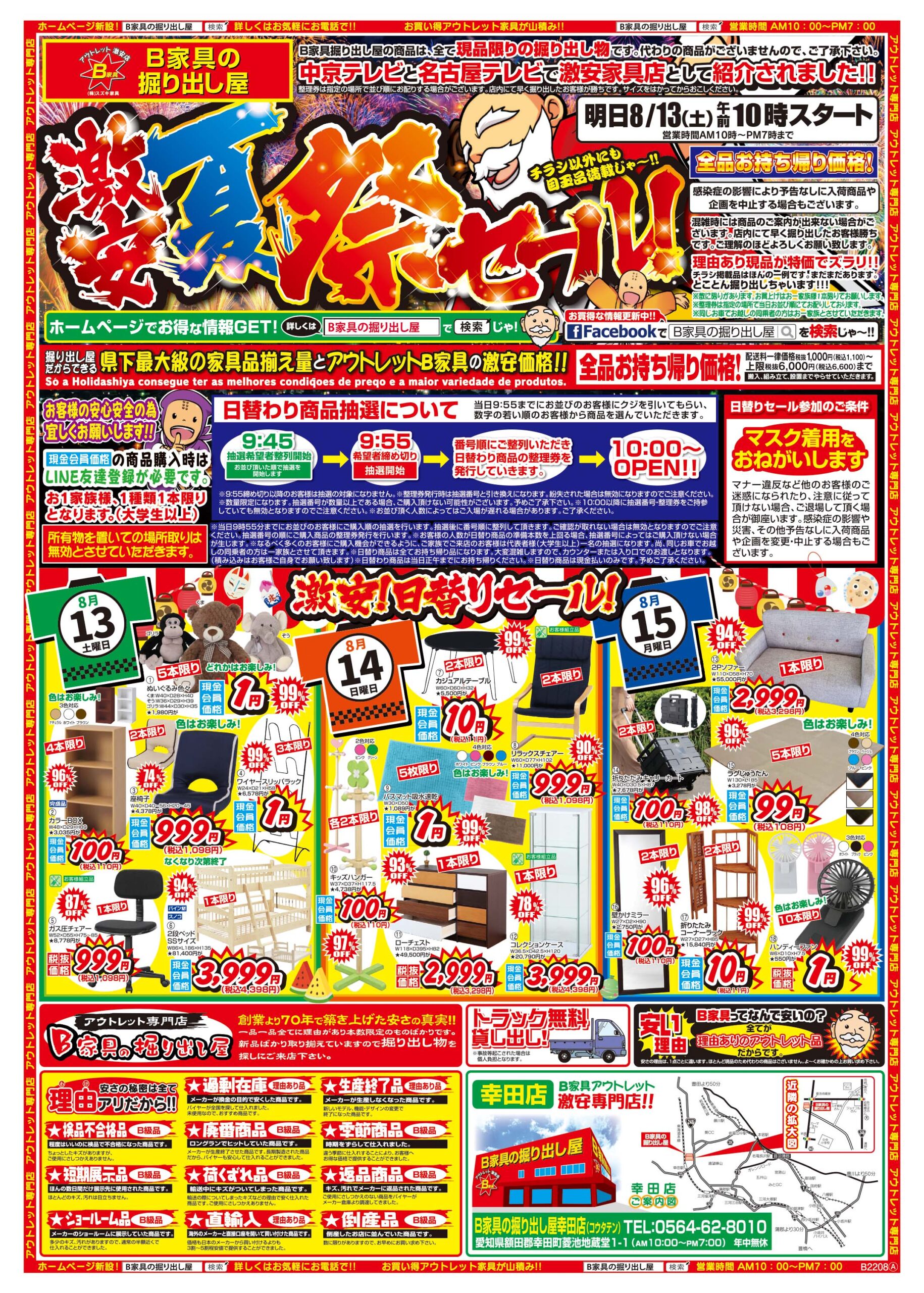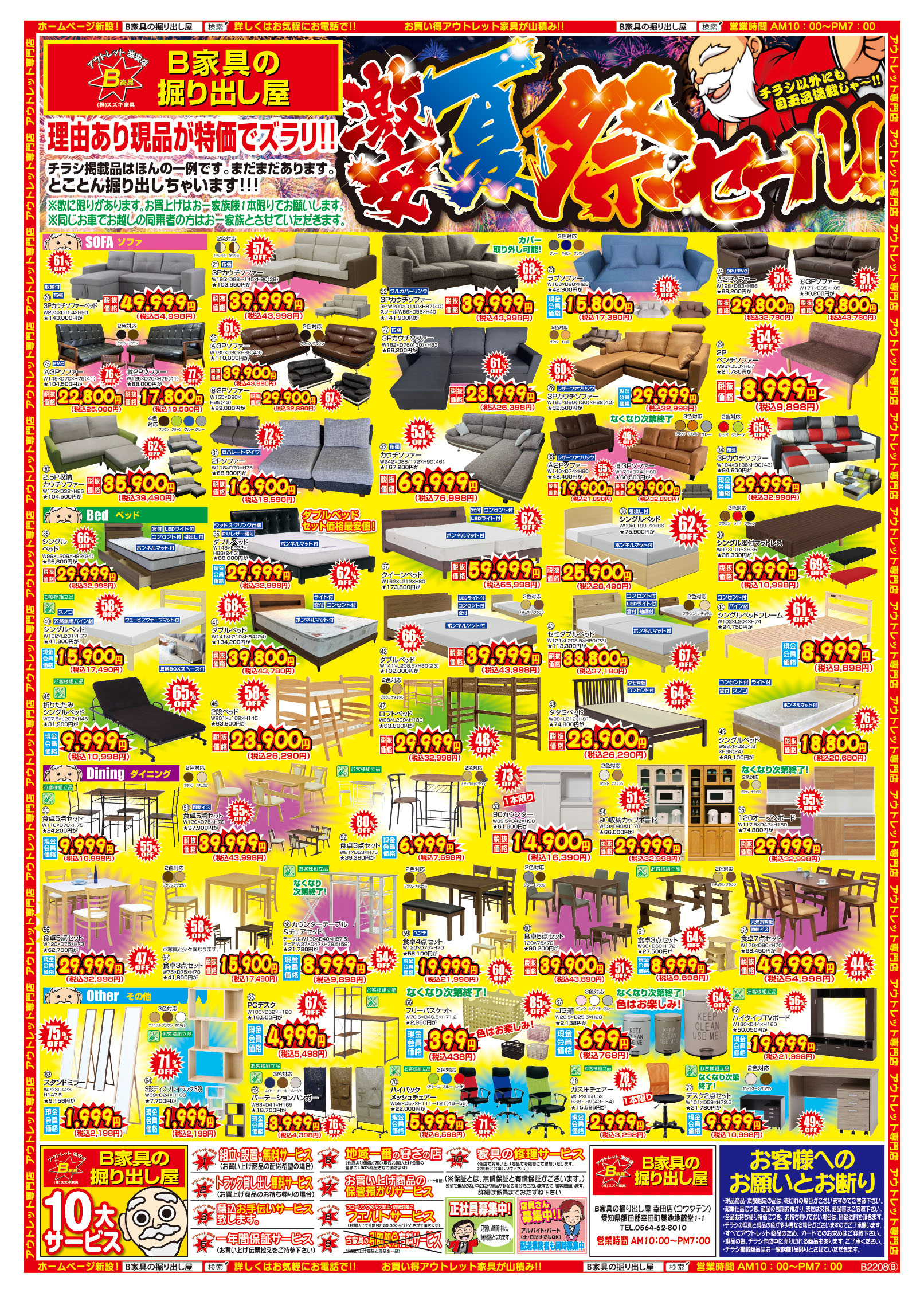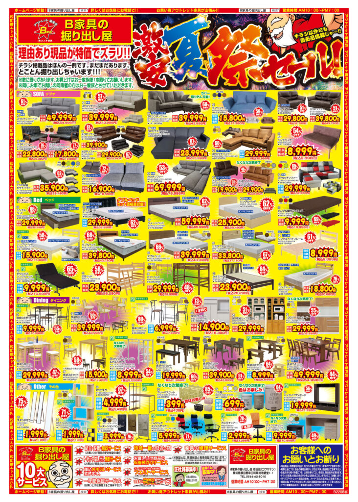 B家具の掘り出し屋は、より良い商品をお客様に激安にてご提供させて頂くため 広告配布をさせて頂いております。
