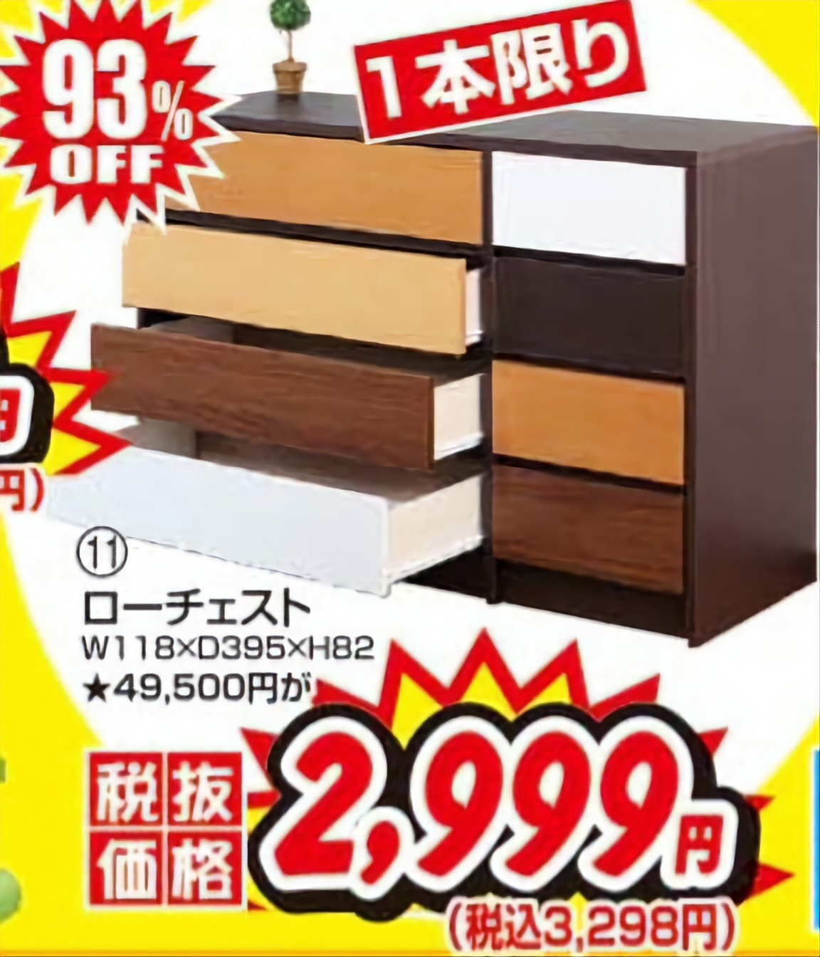 120幅ローチェスト  現金会員価格 ¥2,999 (税抜)