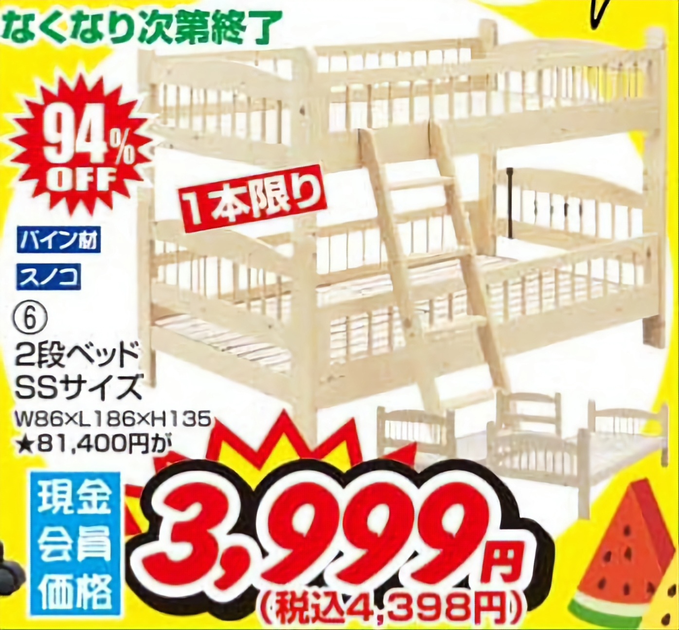 SSサイズ 2段ベット  現金会員価格 ¥3,999(税抜)