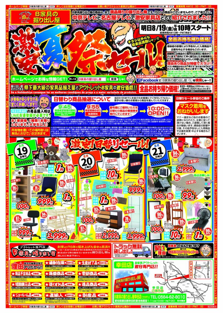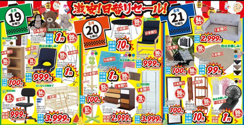 B家具の掘り出し屋の激・安 夏祭りセーール❗❗