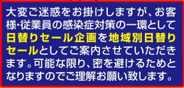 今回日替わりセールは、感染症対策を取らせて頂き