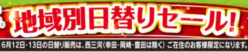 6.12 6/13は、 西三河(幸田町 岡崎市 豊田市を除く)在住のお客様限定