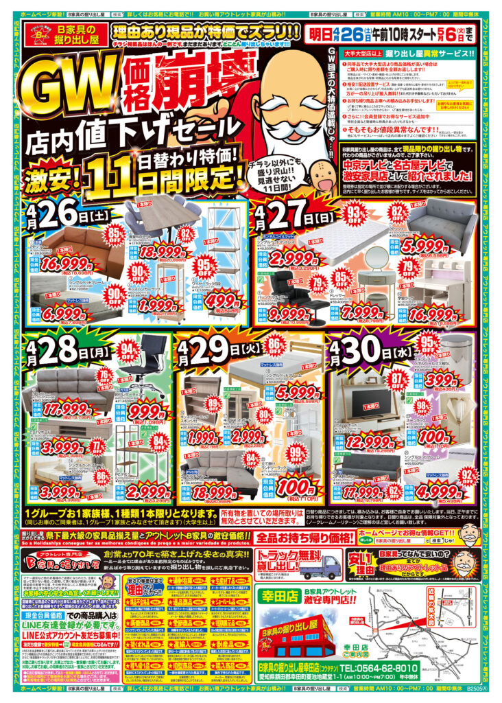B家具の掘り出し屋もっっっ❗❗❗ ゴールデンウイークのBIGセーール✨✨✨ を 開催でーーーす💥💥💥