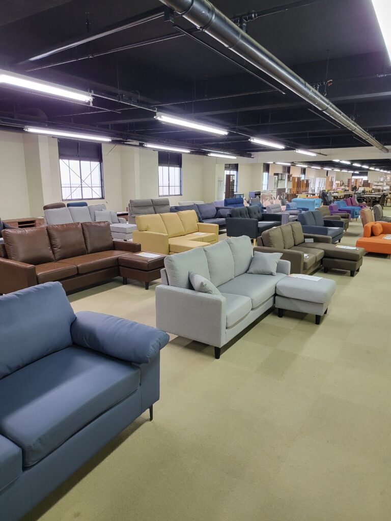 すでに 店内に山積み展示中です。新作ソファーも新作ベットも😆😆