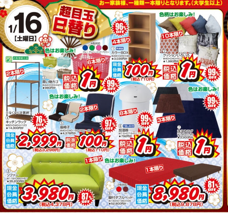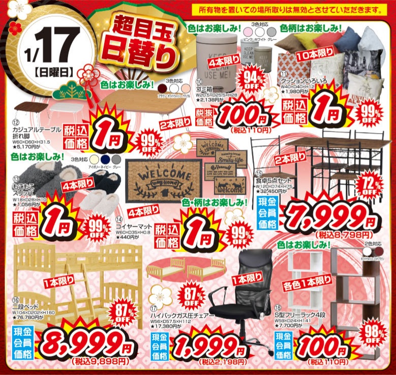 (日替わり商品の現金会員価格は、LINEお友達登録が必要です。当日登録は、不可)