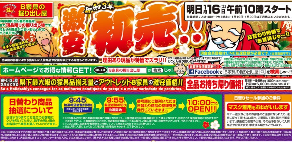 B家具の掘り出し屋は、ステイホーム期間中でも お客様のより良い生活の応援のために