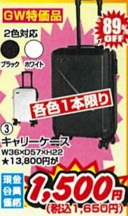 キャリーケース 現金会員価格 ¥1,500(税抜)