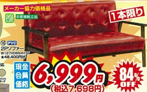 2人掛けソファー 現金会員価格 ¥6,999(税抜)