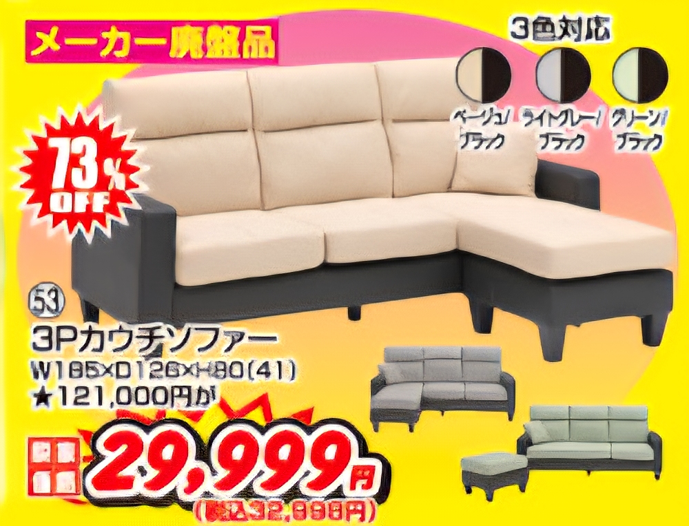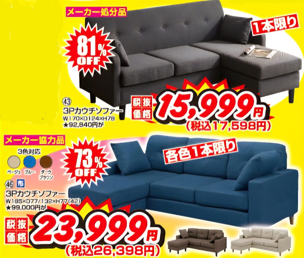 地域最安値のソファー❗❗ 足掛けオットマン付き から 2人掛けまでっっっ💥💥 100台以上 店内にて展示中でーーす🔥🔥