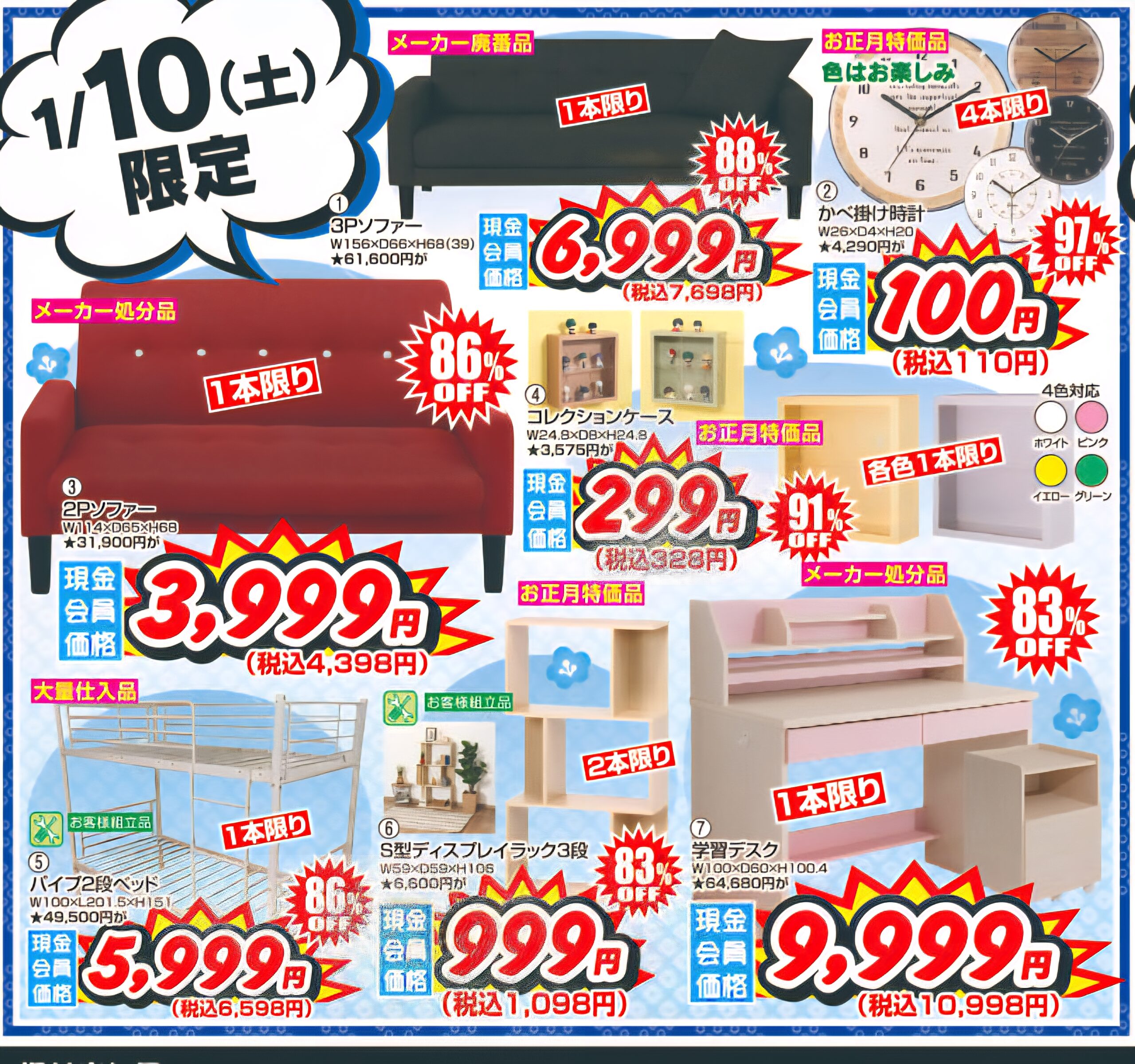 B家具の掘り出し屋では、 新春 ビックリ価格セーール( ゚Д゚)❗❗