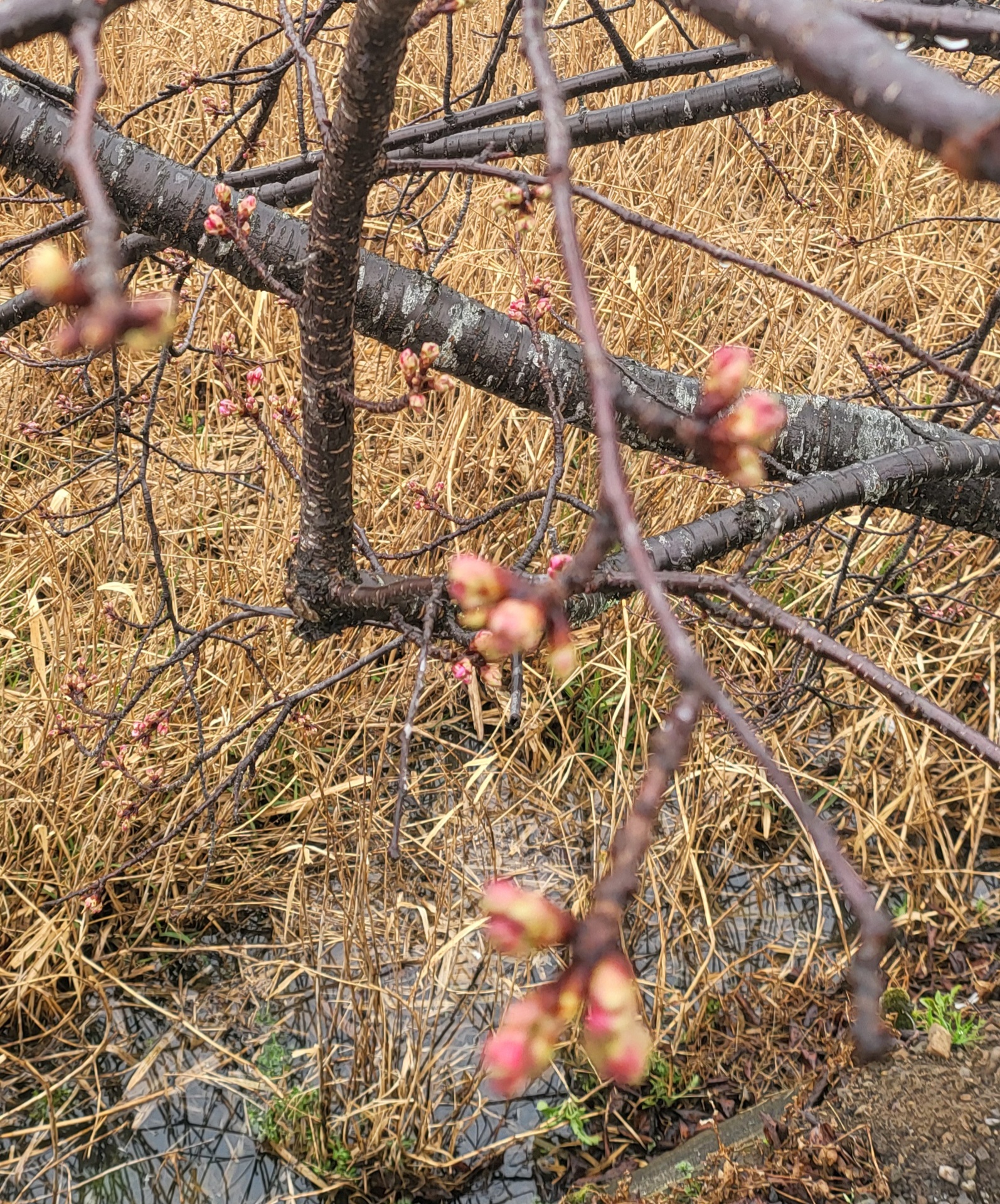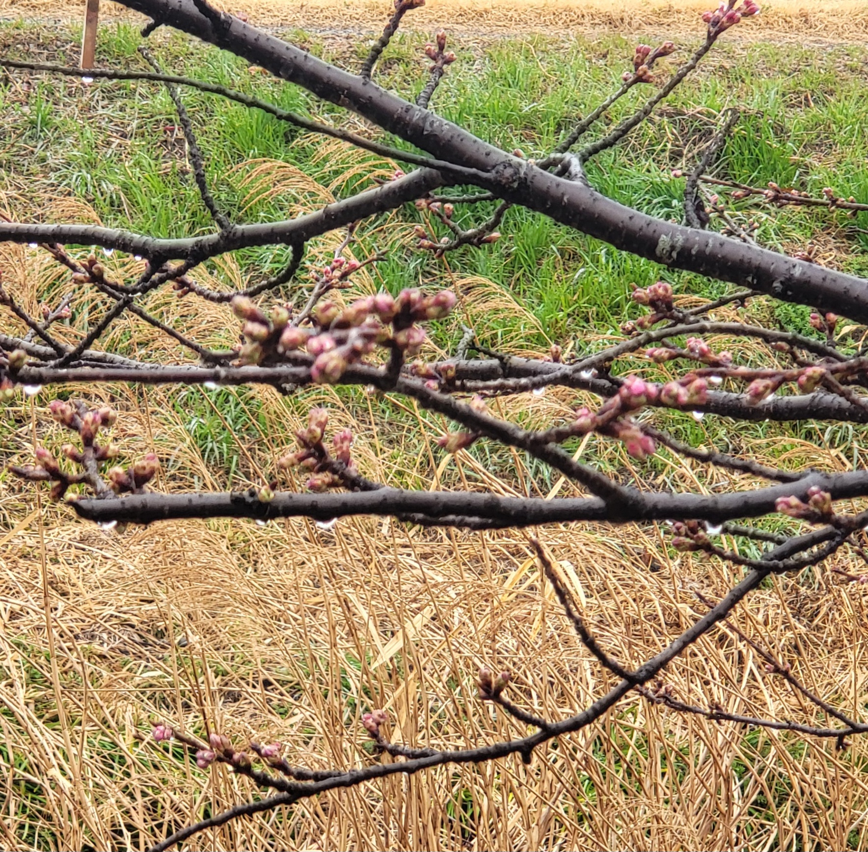 お店の川沿いのサクラが そろそろ開花しそうなツボミになっております。😀😀 暖かい春が 楽しみです🎶🎶