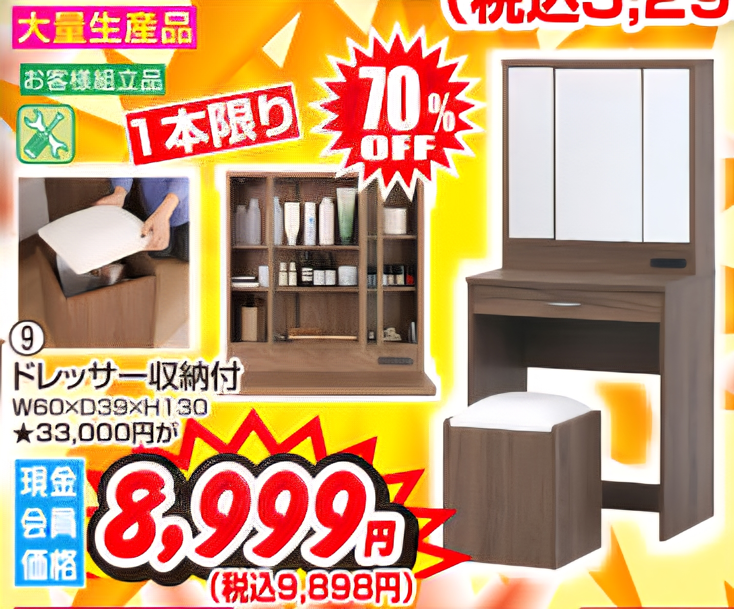 収納付ドレッサー🎶🎶 ¥8,999(税抜現金会員価格)