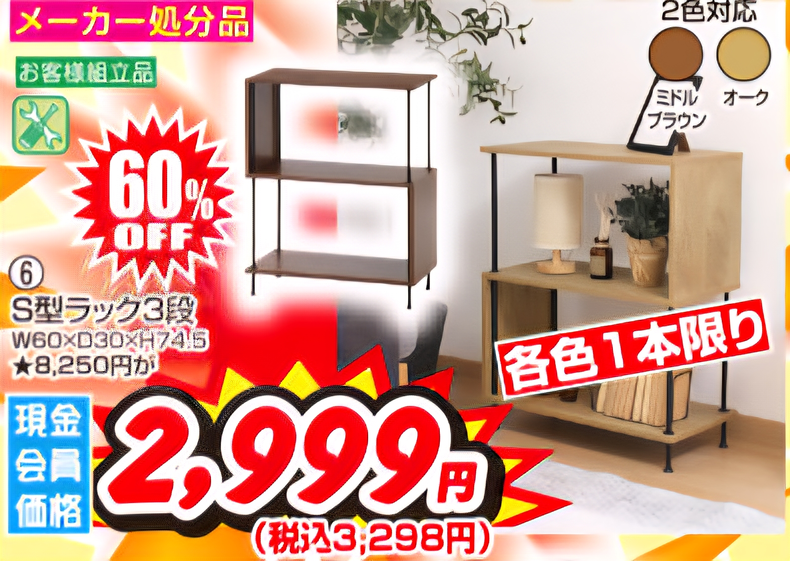 S型ラック🎶🎶¥2,999(税抜現金会員価格)