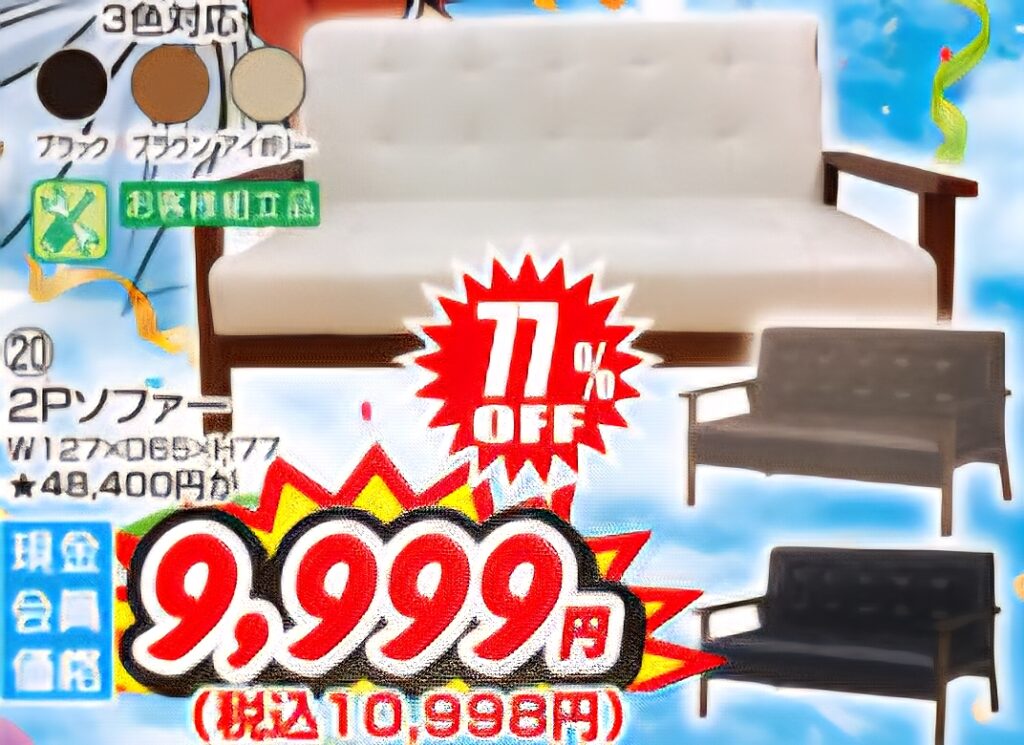 2人掛けソファー ¥7,999(税抜現金会員価格)