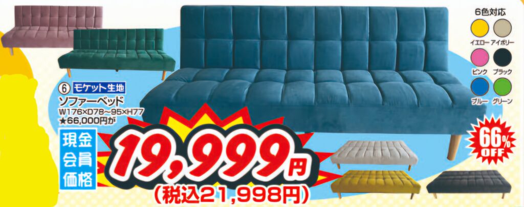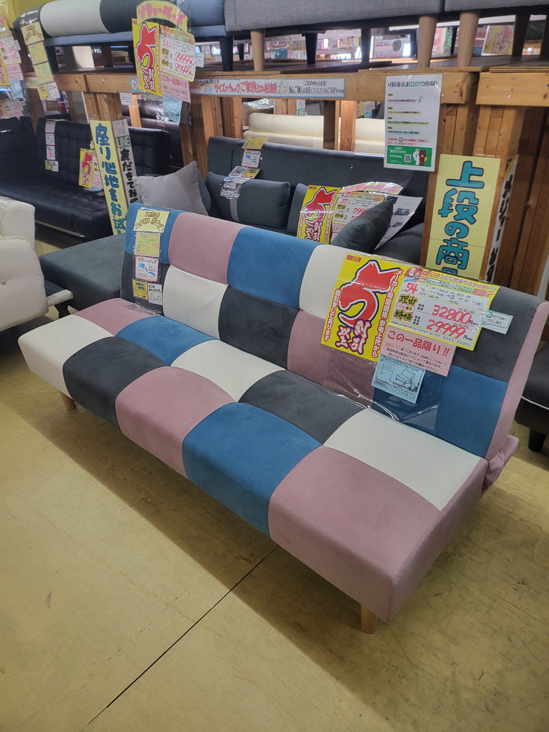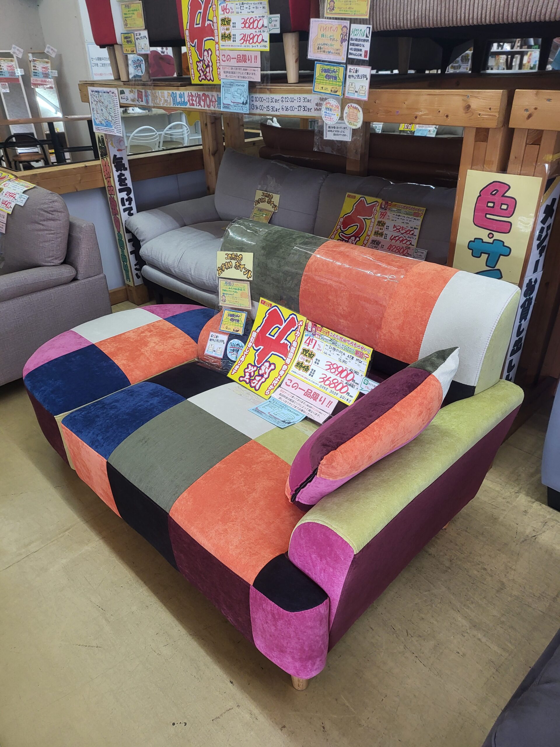 クリスマスシーズンに ピッタリの ベルベット生地の2人掛けソファー🎶🎶¥7,999(税抜現金会員価格)などなど