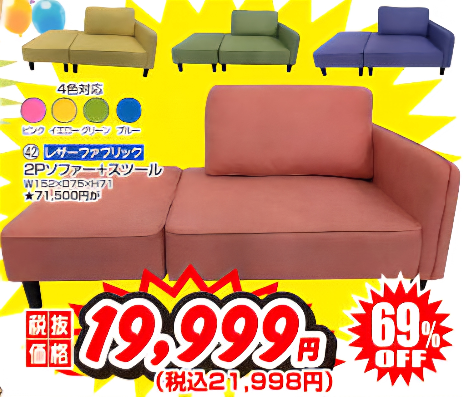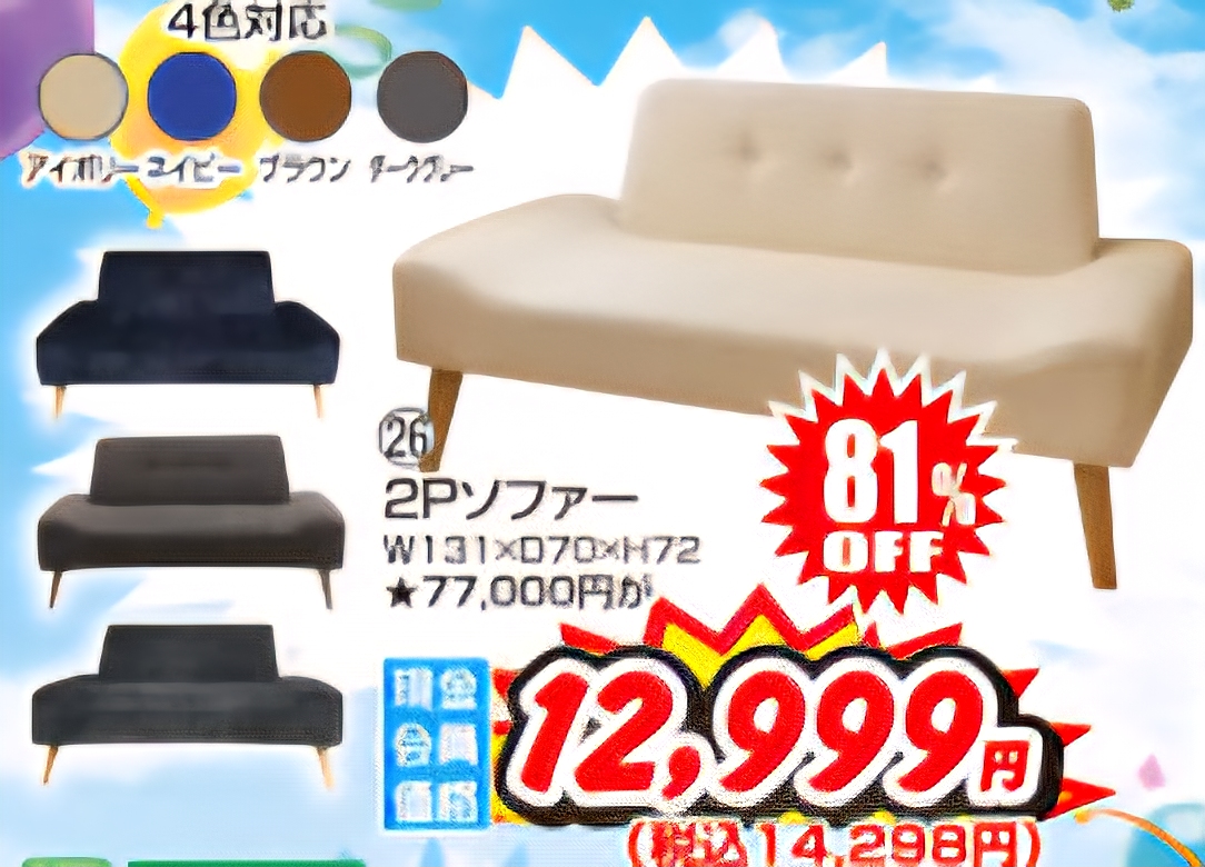 2人掛けソファー ¥7,999(税抜現金会員価格)