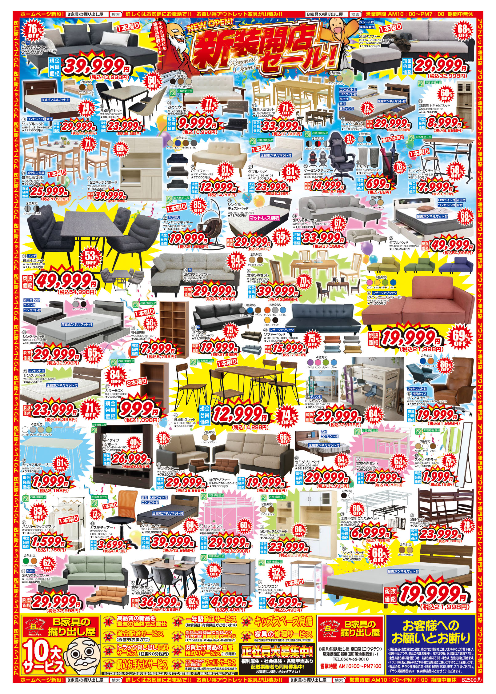 B家具の掘り出し屋では、 只今 NEW OPEN 新装開店セールを